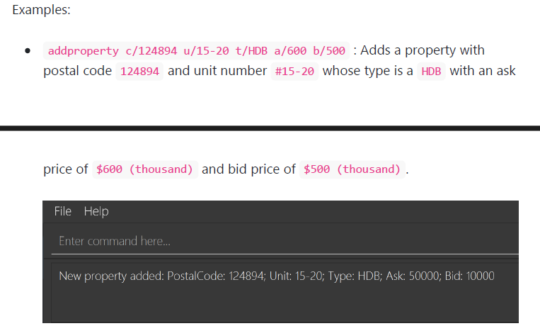 addproperty image in the user guide does not align with the examples. The asking and bid prices are different. This may cause wrong guidance to readers.