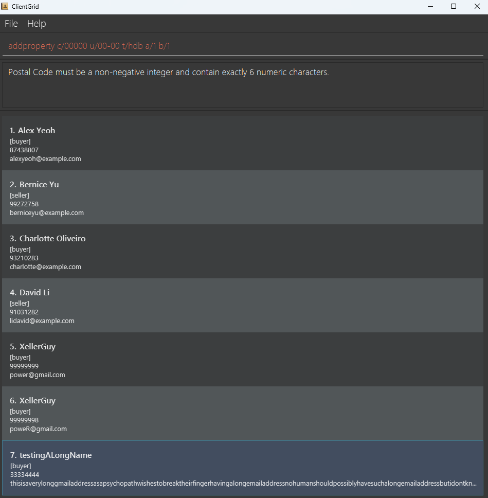 - addbuyer n/testingALongName p/33334444 e/thisisaverylonggmailaddressasapsychopathwishestobreaktheirfingerhavingalongemailaddressnohumanshouldpossiblyhavesuchalongemailaddressbutidontknowwhytheydohavesuchalongemailaddressiamrunningoutofwordstosaysoiamjustgonnaputfillerwordstokeepextendingthisthinghmmidonotreallylikepeandtypingabunchofweirdstuff@gmail.com