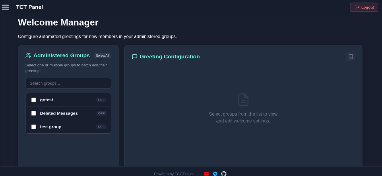 TCT is a powerful and fast WA bot manager designed for both personal and group administration.