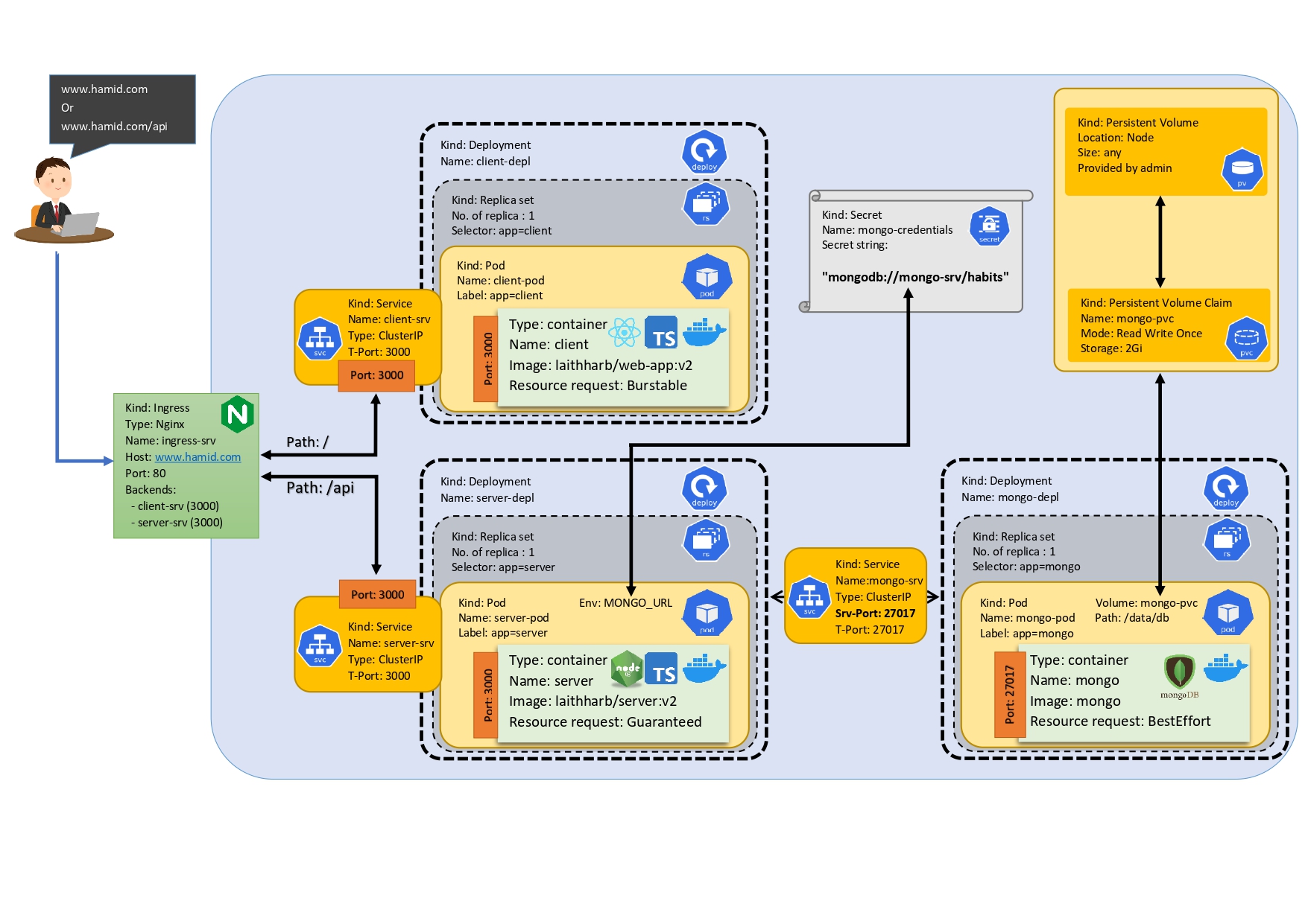 This repo holds the manifest files for the K8s (1.22) cluster. There are 6 manifest files such that when you apply it on the K8s cluster it will produce below diagram. Note: there is a high-quality version of this figure (K8s-Diagram.pdf)