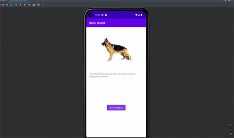 - Toast with message appears when button is pressed