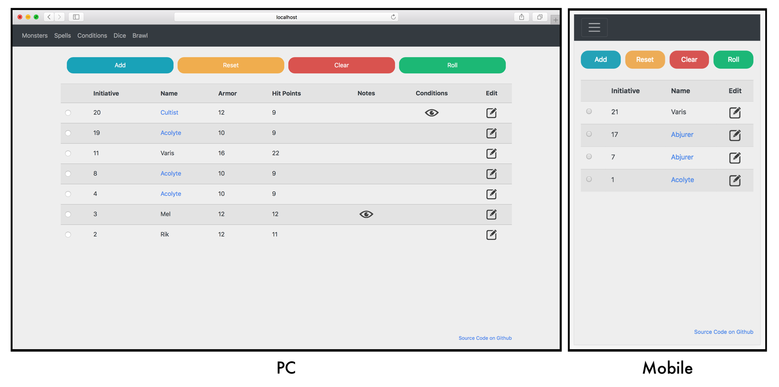 Using this application a Dungeon Master can easily track all things combat for their Dungeons and Dragons group.