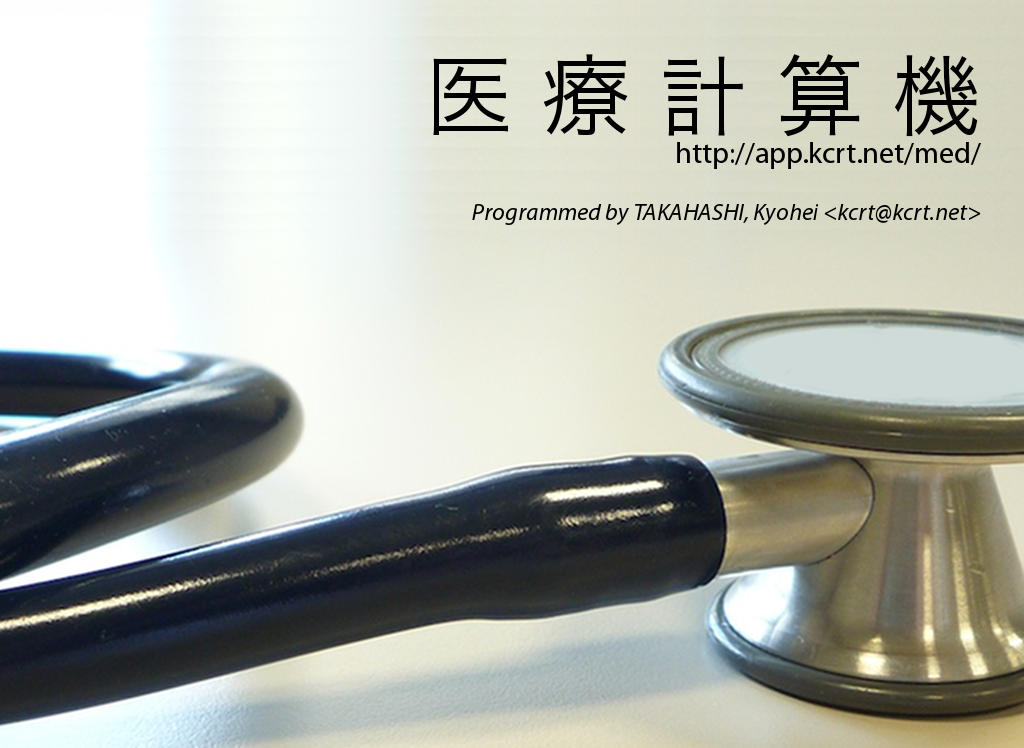 app.kcrt.net上に、医療計算機の安定版をホストしております。 ウェブブラウザでアクセスするか、iOSではWebClipとして登録して使用してください。