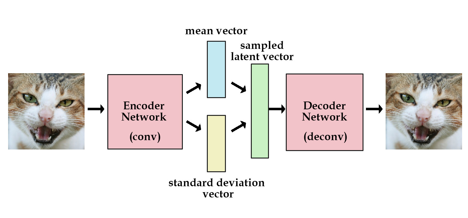 VAE는 데이터의 확률분포를 학습하기 위한 두 개의 뉴럴네트워크로 구성되어 있다.