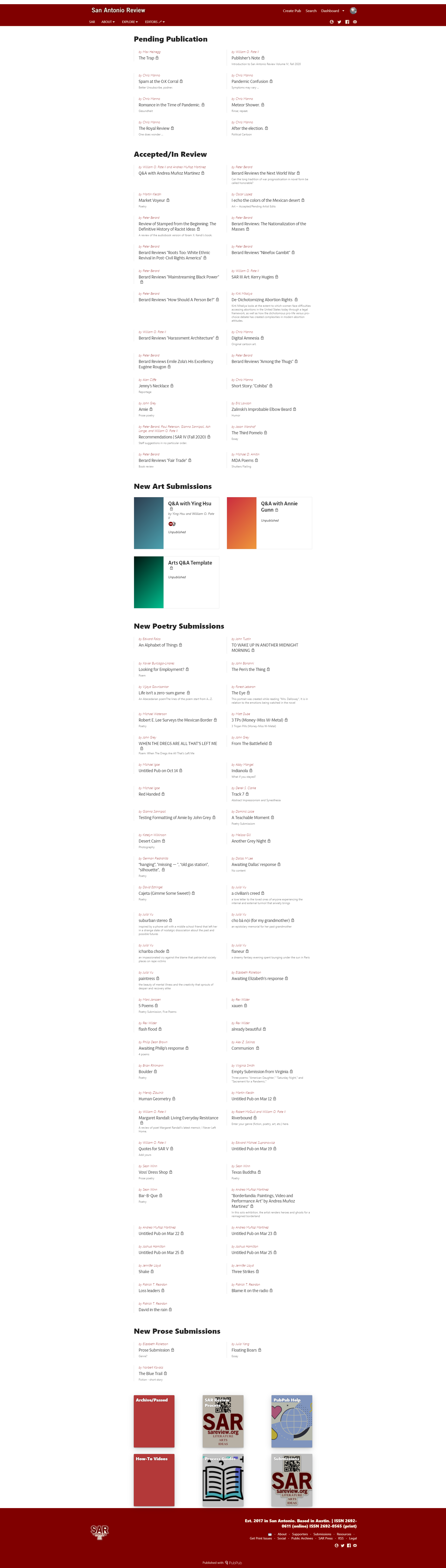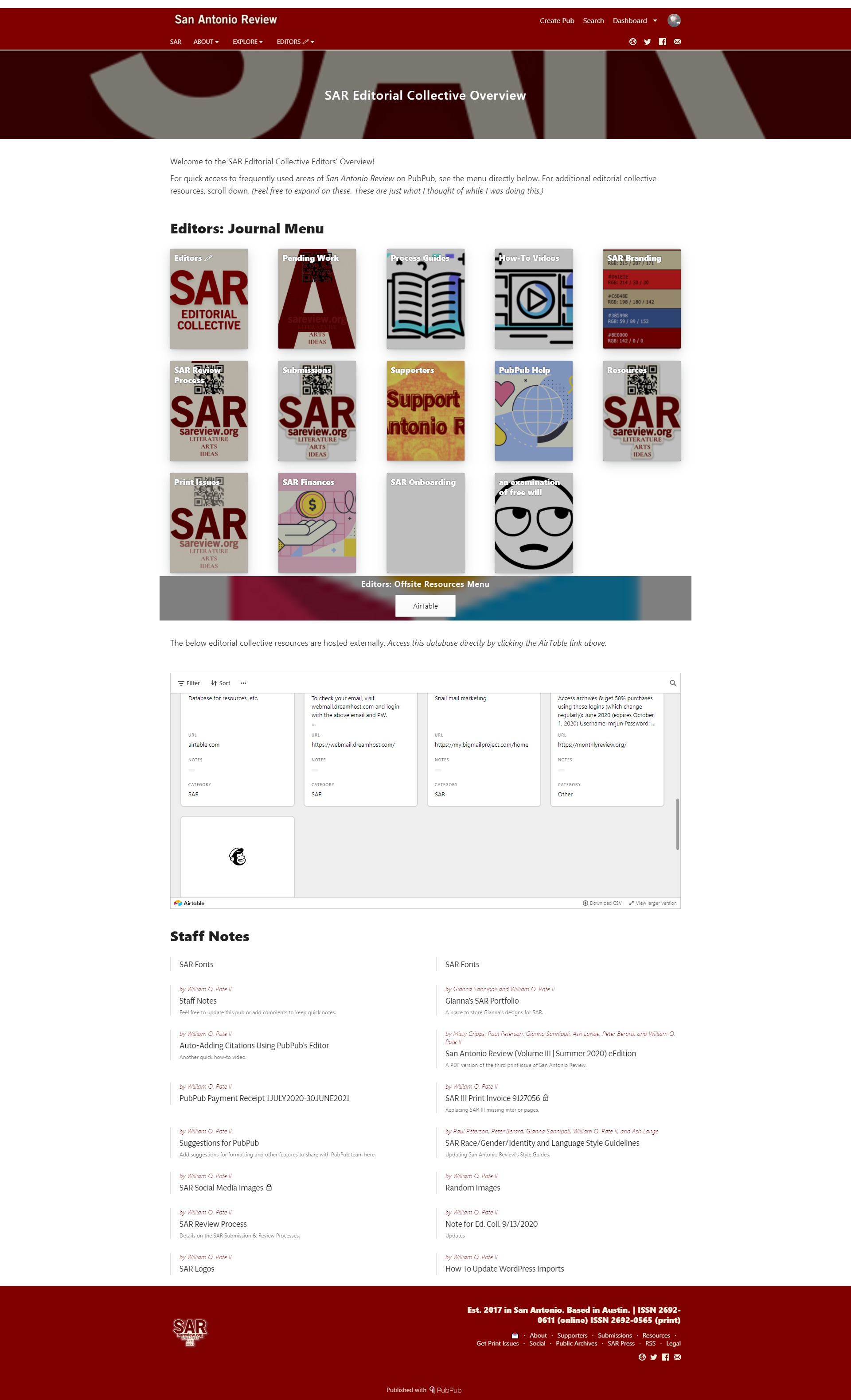 As pretty heavy users of PubPub who receive endless notes from potential contributors unclear how to use the platform to submit their work, I'm (along with the rest of the SAR Editorial Collective) excited to work with y'all on figuring this out. One of the biggest issues is notifications -- both our receiving them when a new submission comes in and notifying contributors that we've followed up on their submission via comments. I also started drafting this Pub a while back (which may be a bit higher-level than what you're looking for) and need to add to it (others are welcome to add notes/request access to edit and add their thoughts). https://www.sareview.org/pub/xhin6k71 About San Antonio Review: