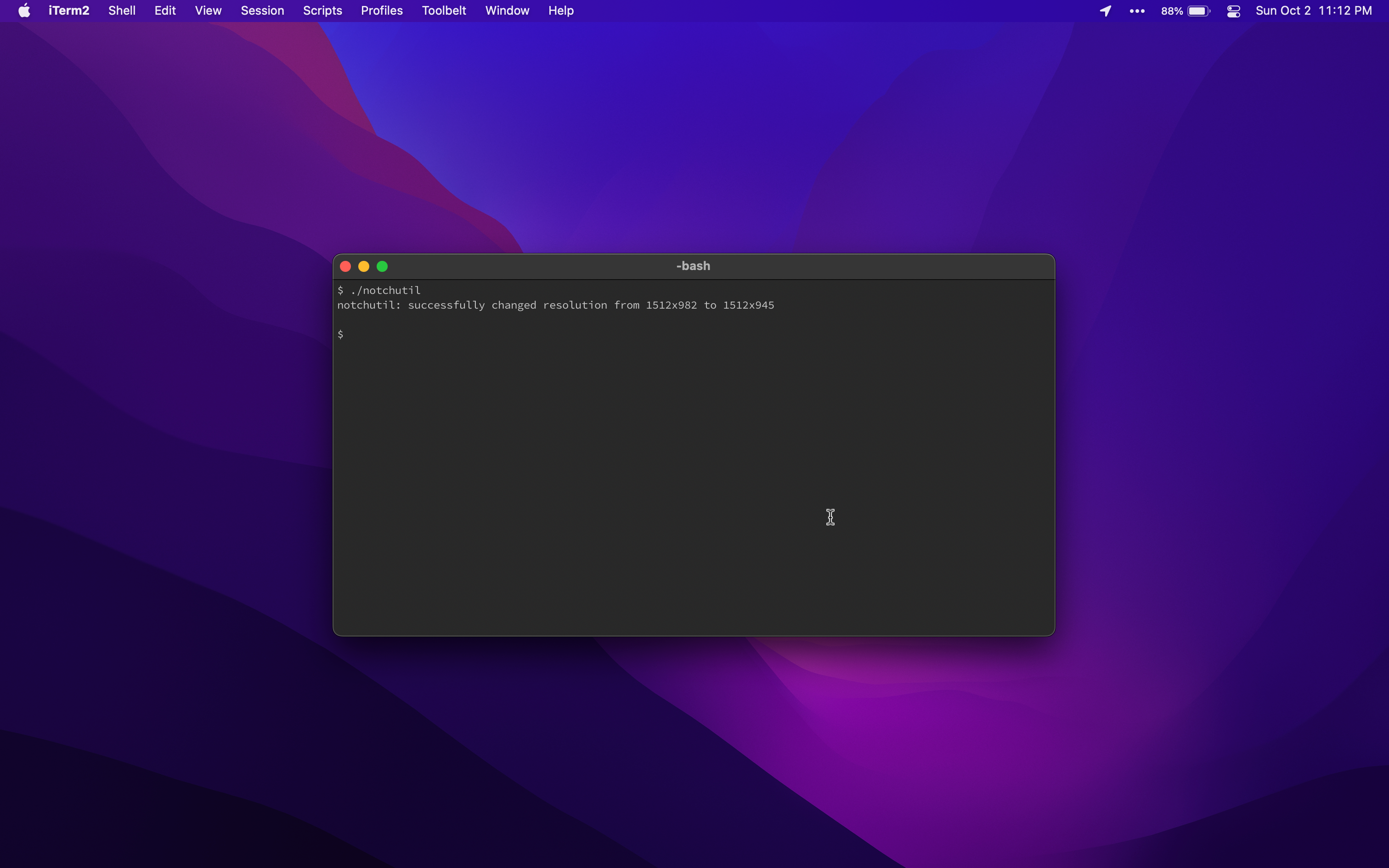 notchutil is a simple tool to switch between the default and a modified resolution with the intent to hide the notch on Apple's newer MacBook models.