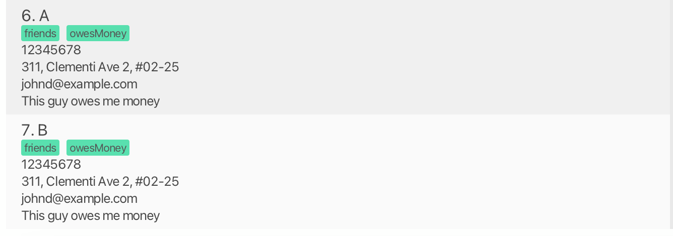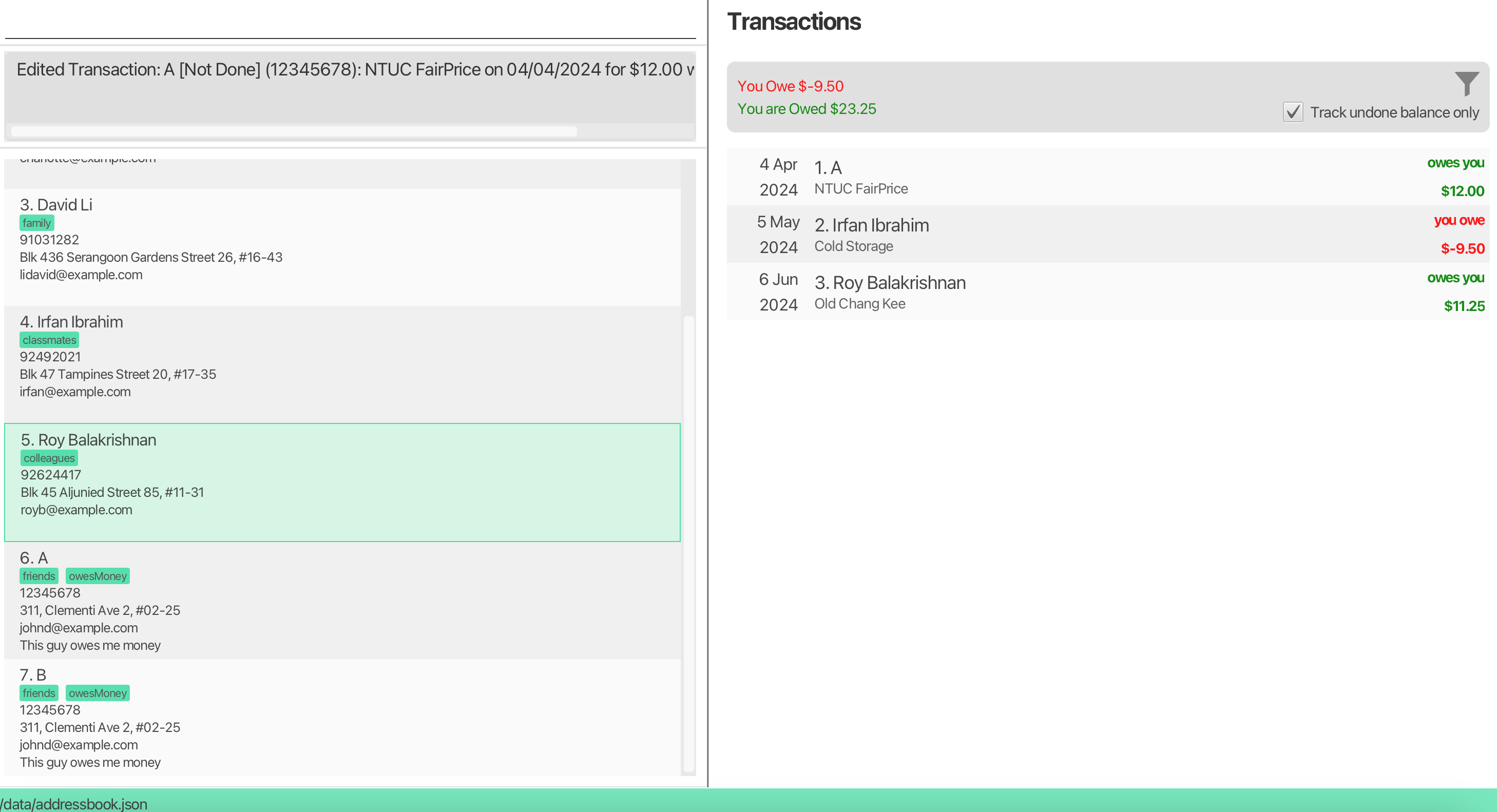 Suppose the user would like to edit the first transaction to assign it to B. The input used editTxn 1 p/12345678 results in A being assigned to the first transaction instead.