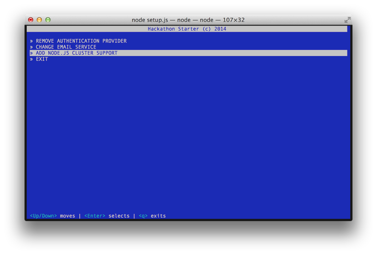 Currently it supports removing authentication providers, switching between SendGrid, Mailgun and Mandrill email services and adding a Node.js cluster support.