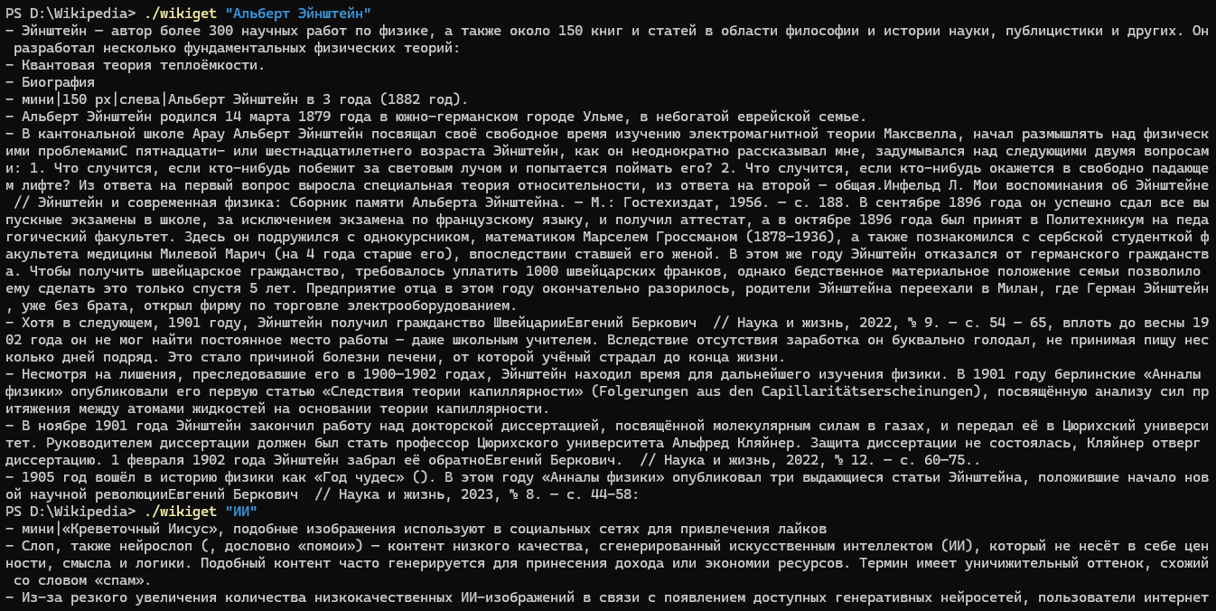 wikiget.exe "Название статьи" wikiget.exe "Сознание" wikiget.exe "Квантовая механика"