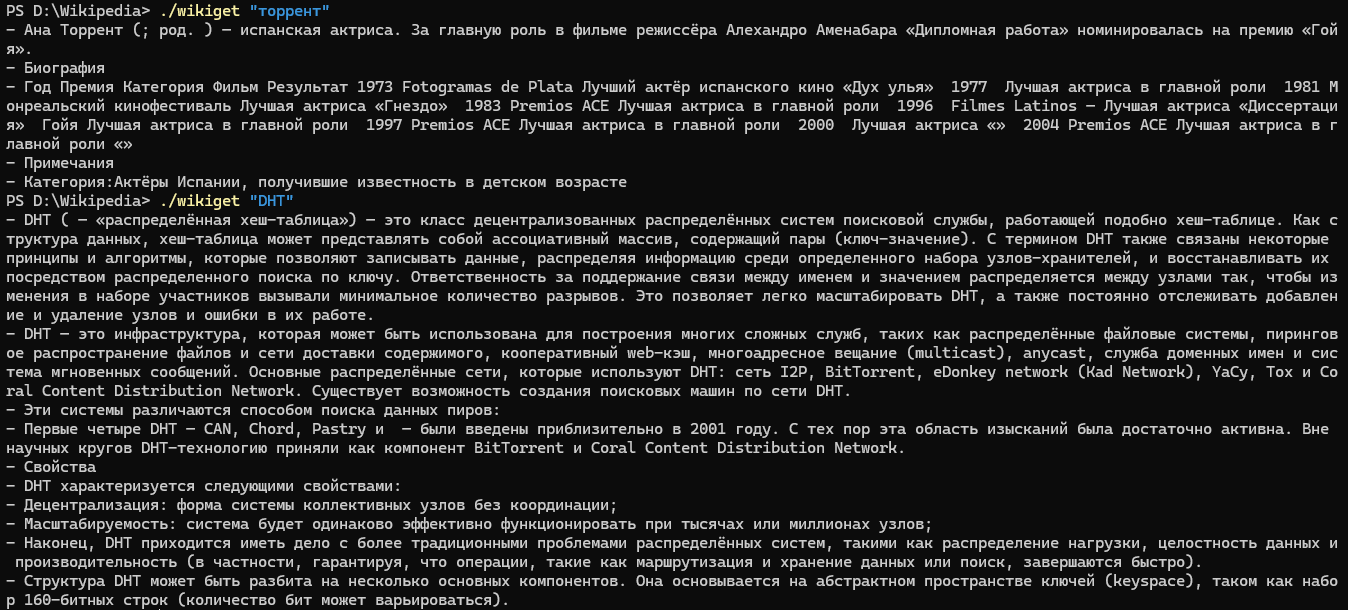 Убедитесь, что на вашем компьютере установлен .NET 10 Runtime. Без него программа wikiget.exe не запустится.