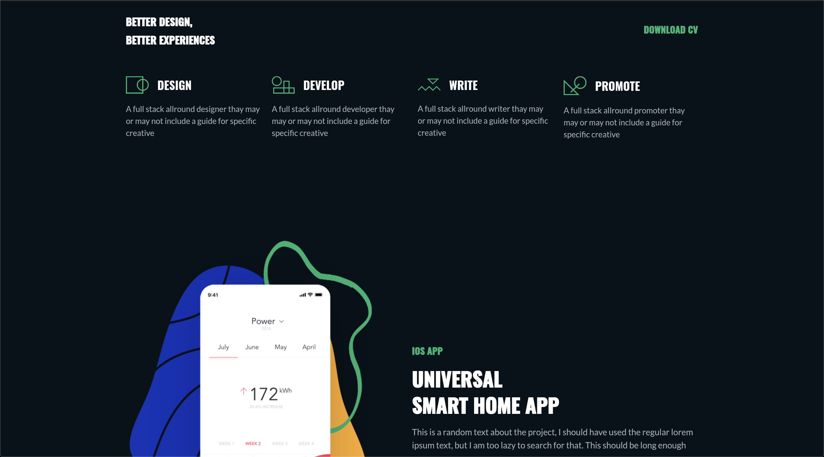 Web Portfolio, Based on a design on UpLabs and hosted on Firebase 💓.