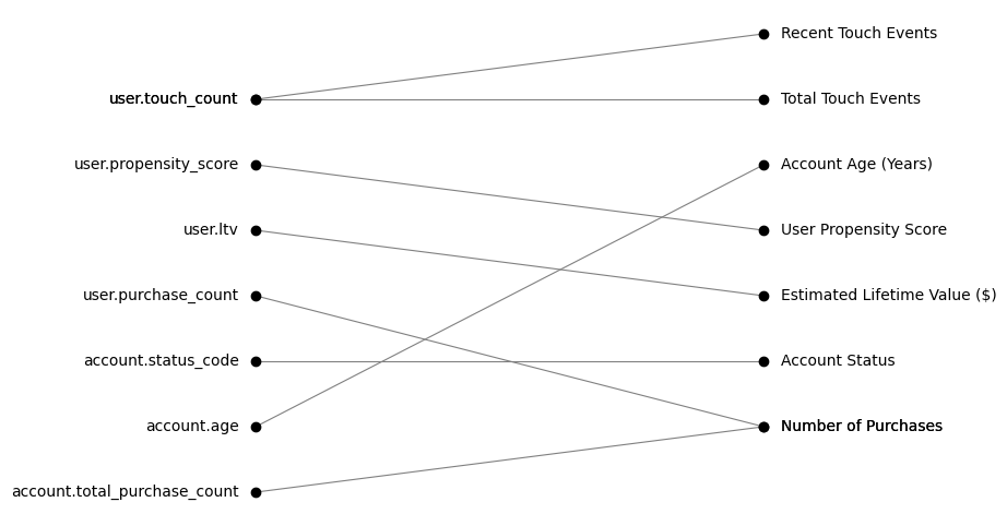 | 4 | 6 | 0.741805 | user.purchase_count | integer | Number of Purchases | number |