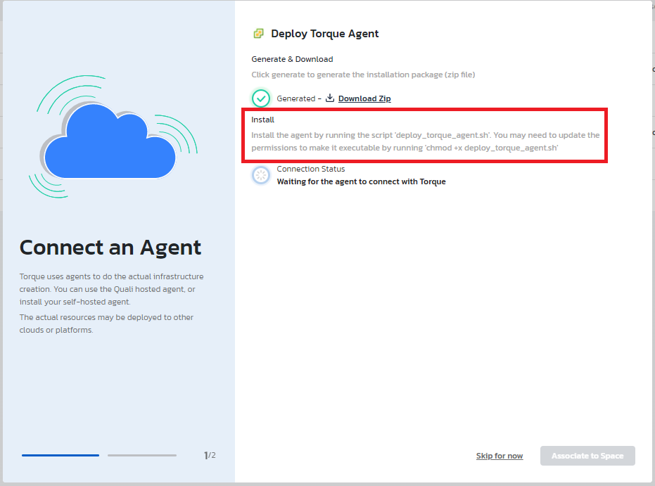 I would like you to fix the procedure to install Agent on the Docker on the Torque screen above.