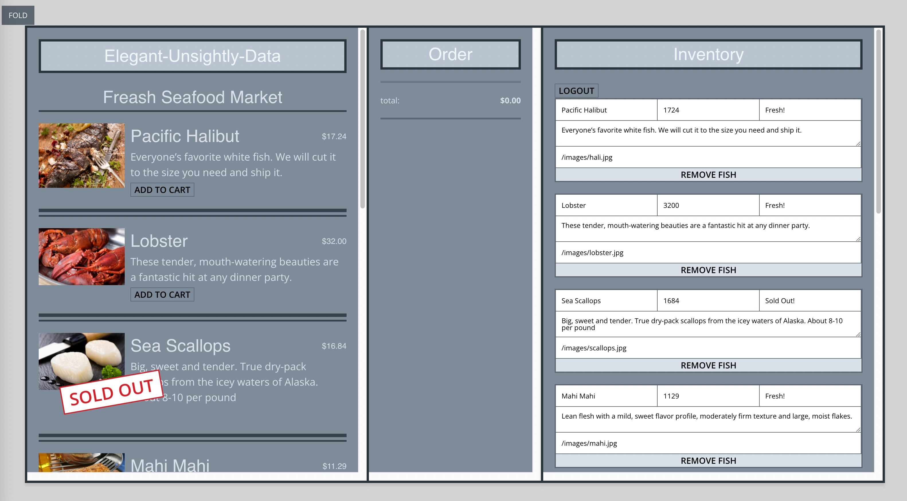Store-Class-Components Created Store where you can add and remove items (fishes), database saved on Firebase, and authentication with github