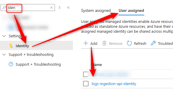 to grant access to the Azure Logs Ingestion API from the depending service principal and/or managed identity