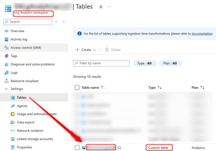 - Configurable detection of json strings (e.g. "{"id":"log-1", "message":"test-1"}") or key value (e.g. "message=test-1") in the log messages with the properties jsonDetection (default true) and keyValueDetection (default true). Azure Log Analytics creates custom fields/ record types for each incoming json property or key name. Important ...if the Logs Ingestion API will be used the custom fields/ columns in the Log Analytics table won't be created automatically any longer and need to be created manually in the depending Log Analytics table and also added in the data collection rule (dcr) definition for the transformation.