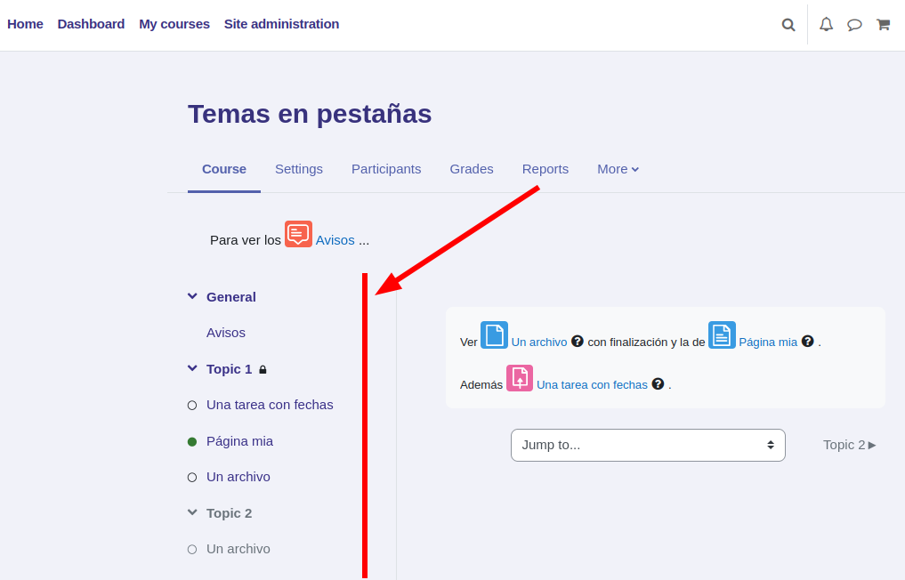 - New tabs view option: course index