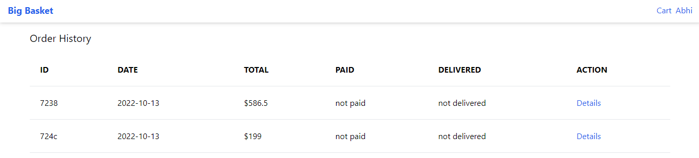 - Big Basket is a E-Commerce web app where user can create account and place orders.