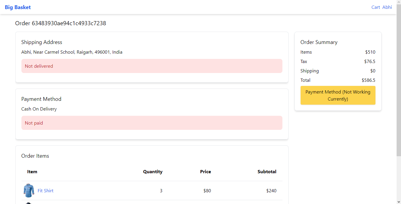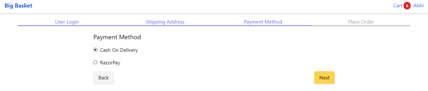 - Payment Method : Currently RazorPay is not implemented Select the Cash on Delivery.