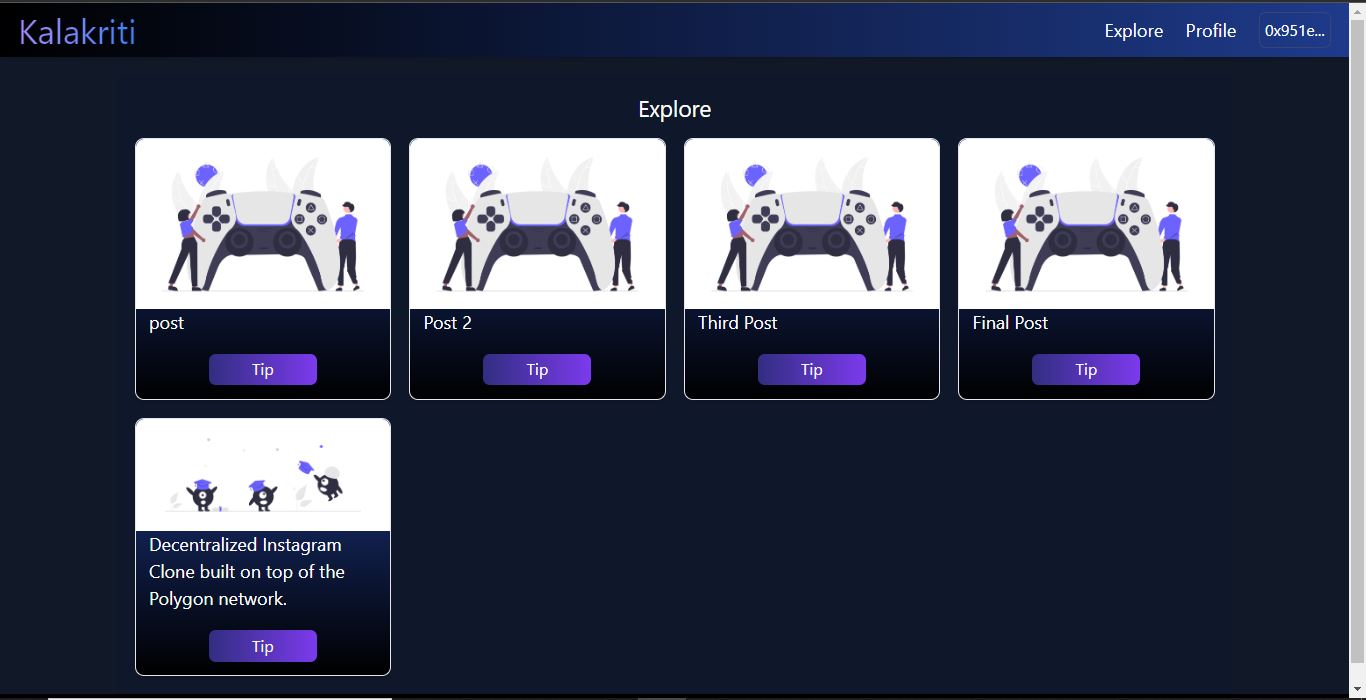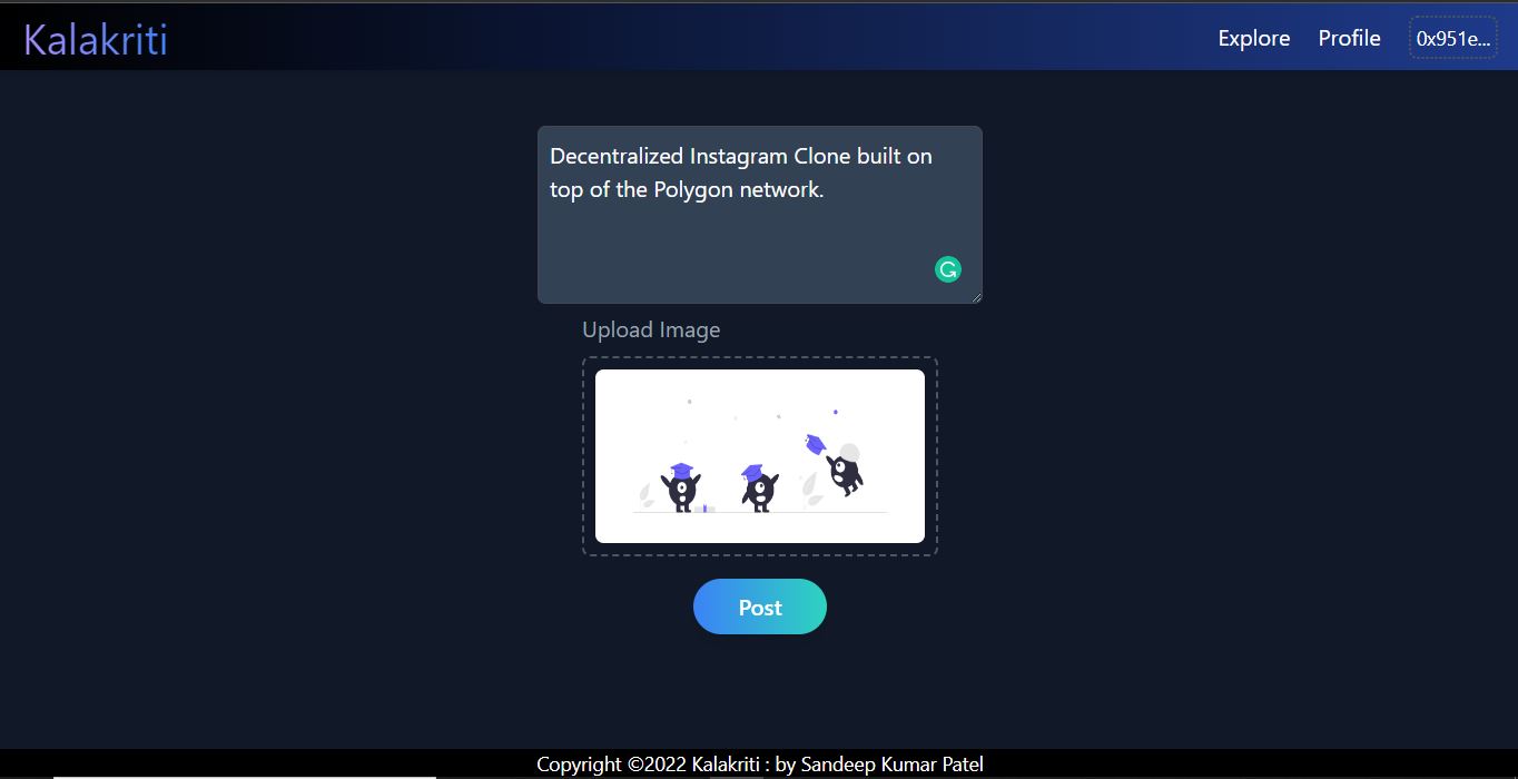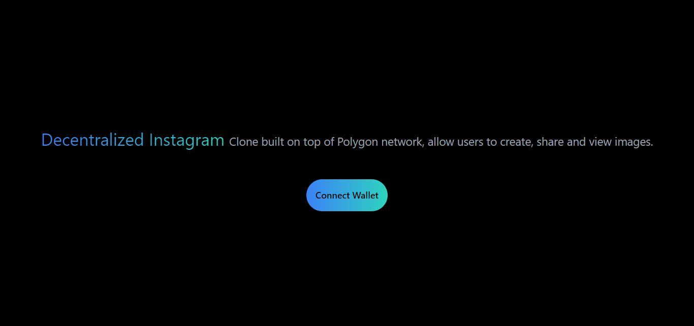 - Decentralized Instagram Clone built on top of the Polygon network, allows users to create, share and view images.
