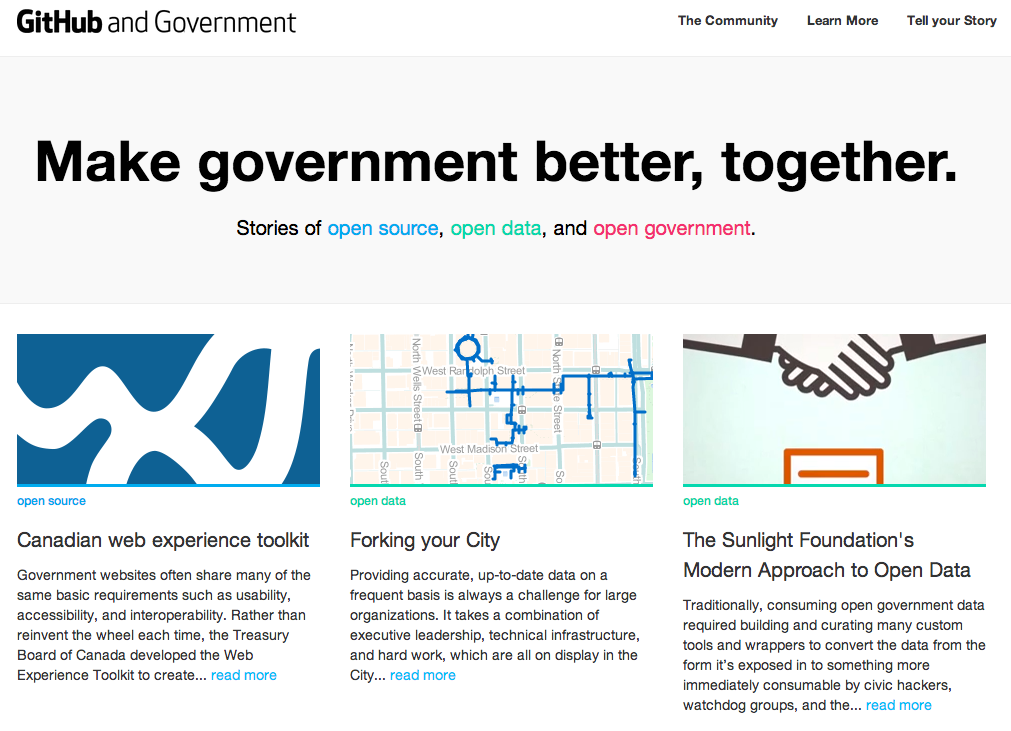 Gather, curate, and feature stories of people using GitHub as part of their open government innovations.