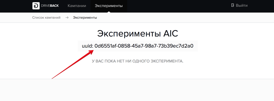 dbex('init', '<DRIVEBACK_EXPERIENTS_UUID>');Driveback Experiments UUID can be obtained from Driveback admin panel: