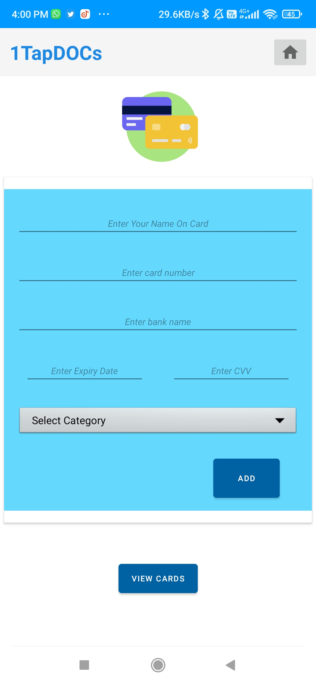 In 1TapDOCs you can store your personal documents like pdf, your Academic documents, Government Documents. Also, you can store your cards details and password details for various platforms.