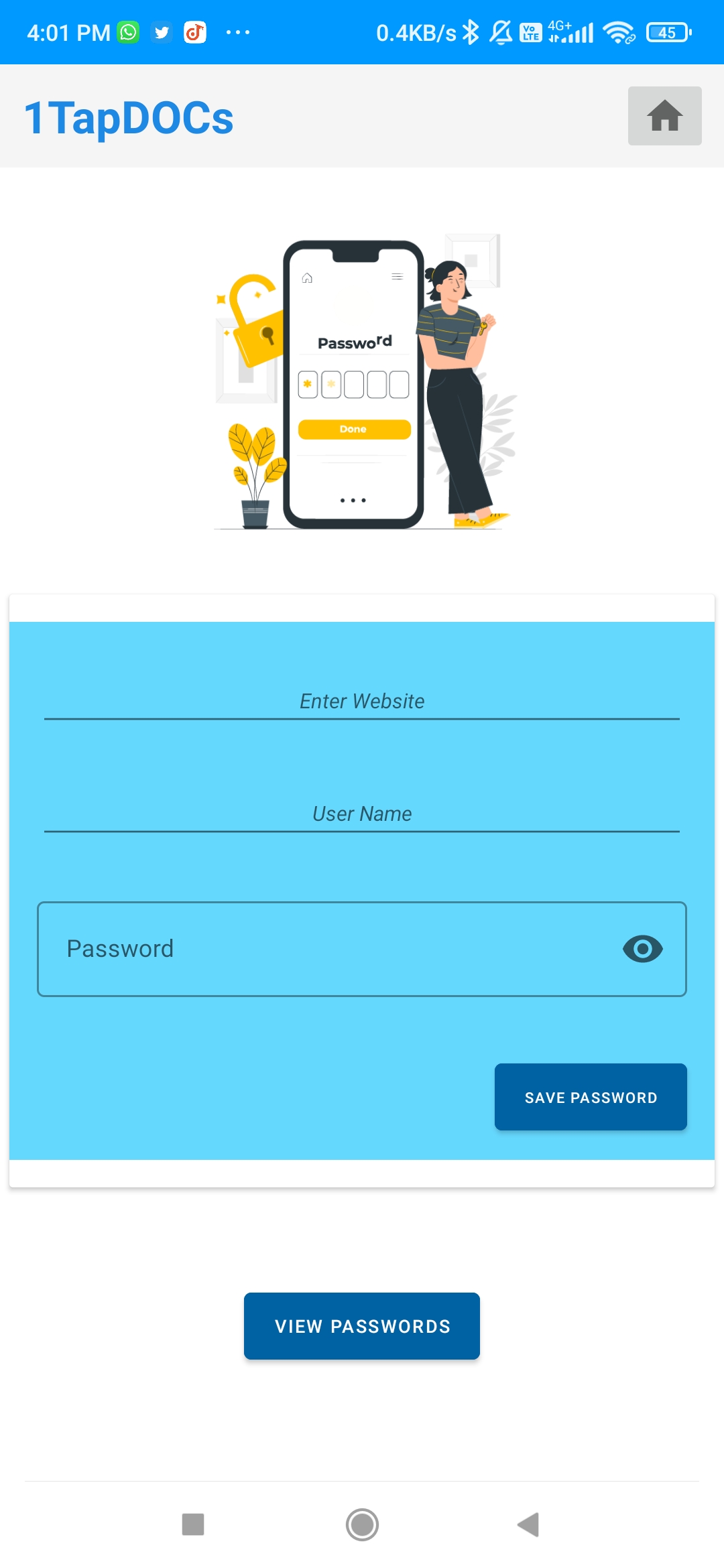 You can upload your PDFs of college and access them in the app without using your phone storage. Many times we forgot our card details in emergencies and we face difficulties but no worries anymore. Now you can save your card details in 1 TapDOCs and View them anytime you want. Also, one more thing happens with all of us and that is we forgot our passwords of many important websites and we have to create new accounts in many cases or we tried forgot password option and that is pretty difficult for many of us, again no worries now you can store your passwords with username and platform name and can access them when you want.