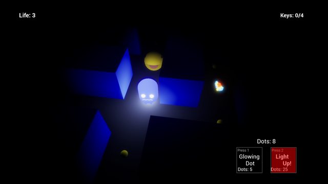 Key 1 = Fire a super dot to see better in the dark ( cost 5 yellow dots).