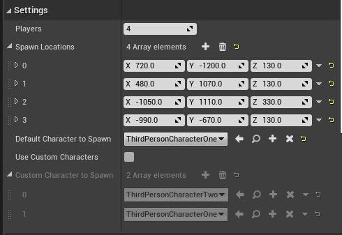All fields can be edited through the blueprint class that derives from the SpawnManager class.