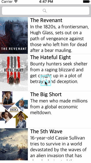 - If a user clicks a poster in the collection view, the view switches to the table view and automatically scrolls to the corresponding row.