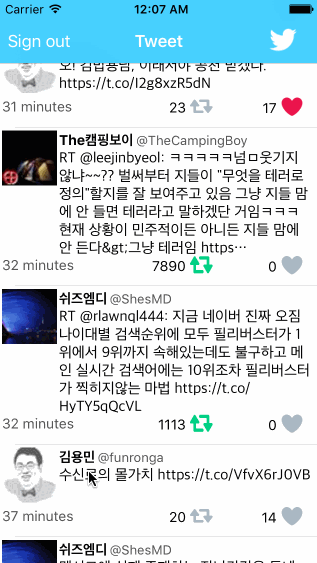- User can load more tweets once they reach the bottom of the feed using infinite loading similar to the actual Twitter client.