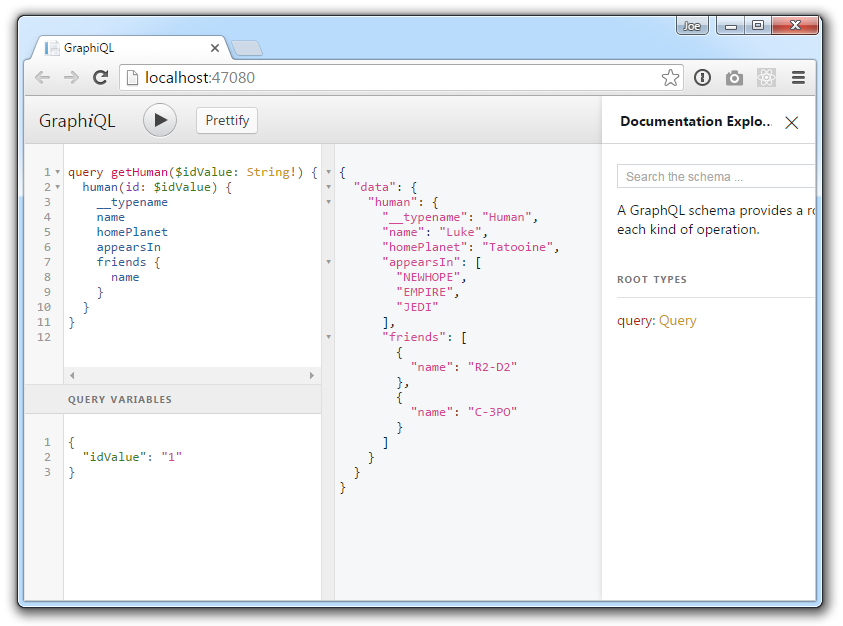 Note: Before running the GraphiQL project: make sure you Build the entire solution so that all the project references get built. (GraphQL, GraphQL-Parser, etc) to avoid missing reference/assembly errors.