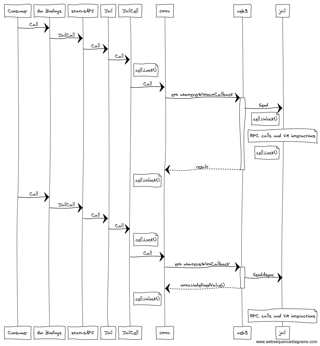 - jail (otto vm): we are using this env in order to allow third party to define commands and different bot’s behaviour in chat. Calls to web3 are handled internally on go side, so we don’t use CallRPC at least from status-react side here. Ans again, code is written by third parties, except our own bots