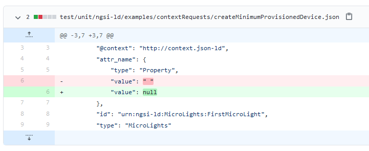 When sending an undefined value, you need to insert a JSON object which is interpreted as const NGSI_LD_NULL = { '@type': 'Intangible', '@value': null }; Where |