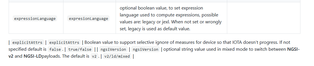 | `ngsiVersion` | `ngsiVersion` | optional string value used in mixed mode to switch between **NGSI-v2** and **NGSI-LD** payloads. The default is `v2`.