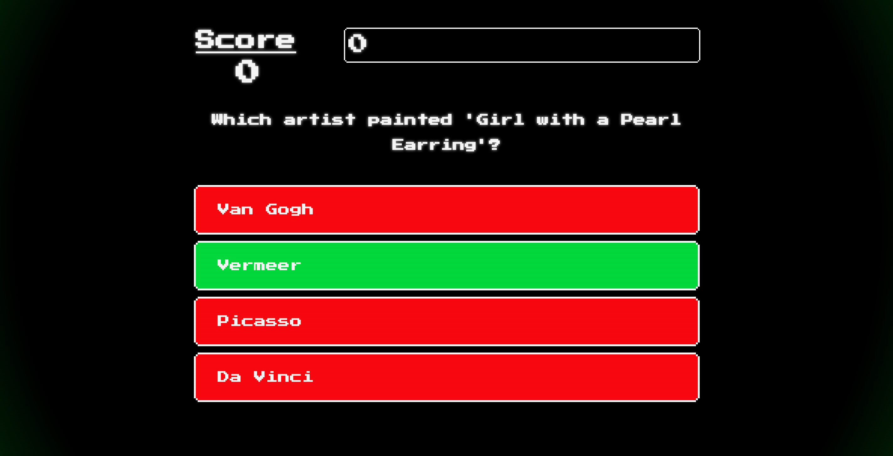 This quiz is a super compact, easy to use app that will bring you back to the days of NES gaming! Development of this quiz I had one thing in mind, why do people play triva? The answer is that it's fun - it's a friendly environment to be competitive.
