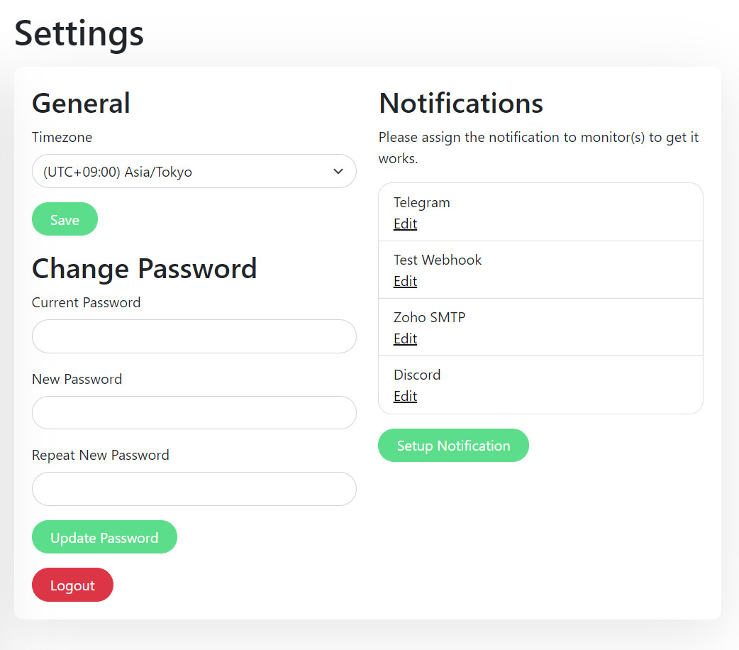 - Notifications via Telegram, Discord, Gotify, Slack, Pushover, Email (SMTP), and 90+ notification services, click here for the full list
