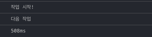 결과물을 보면, 작업이 시작 되고 나서, for 루프가 돌아가는 동안 다음 작업도 실행되고, for 루프가 끝나고 나서 몇 ms 걸렸는지 나타나고 있습니다.