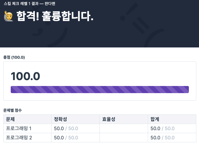 프로그래머스 실력 체크 1, 2 Level (문제 공개 불가능)