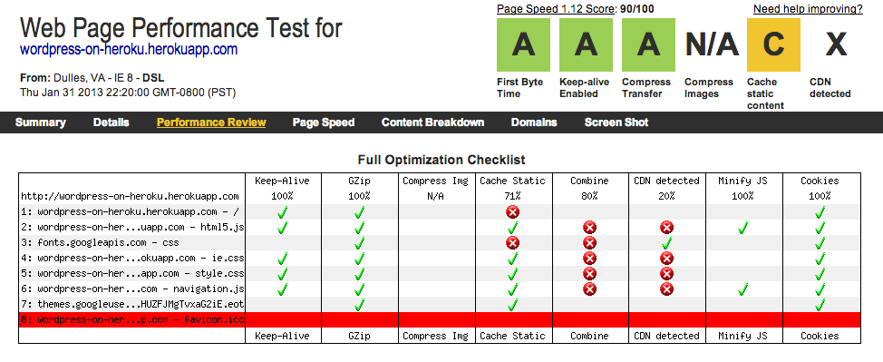 Here are some benchmarks from Google PageSpeed, Blitz.io, and Web Page Test.