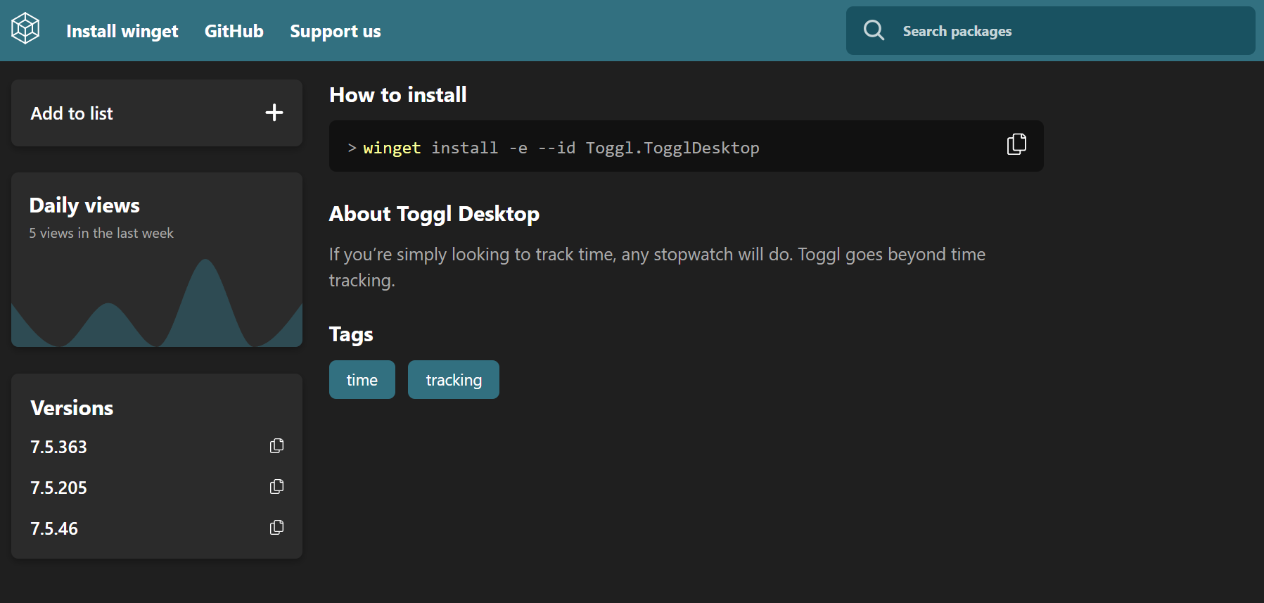 Currently it is not possible to see when a package has been updated the last time and how old a version in winget.run is because only the version number is shown. This is a serious security impact. It would be very helpful to see when a version was uploaded and when the last upload has happened. For example the Toggl.TogglDesktop app. The latest version on winget web seems to be 7.5.363. The version was released in Oct 2020. But in the terminal winget claims the last version is 7.5.458. Obviously the Versions widget on winget.run is also not accurate or not sorted correctly