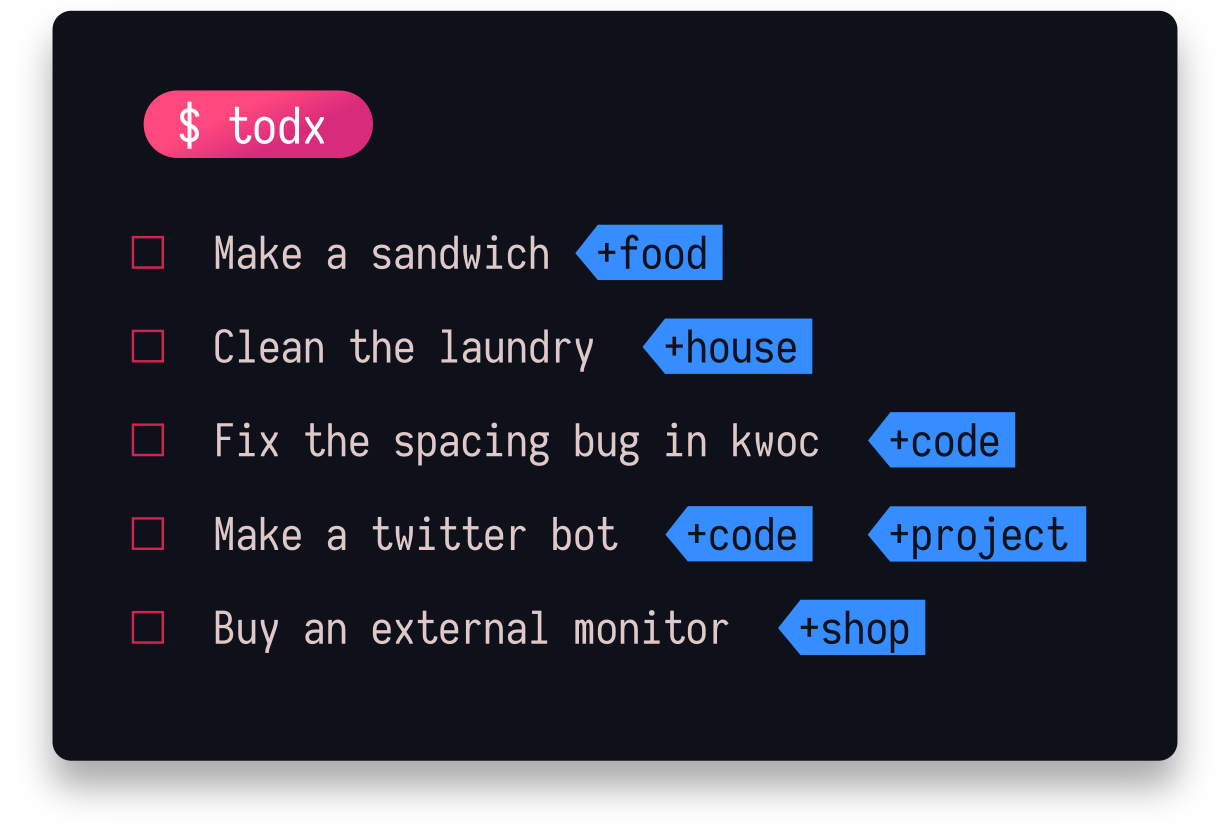A detailed blogpost covering the use is at : https://xypnox.github.io/blag/posts/todx-the-todo-manager/