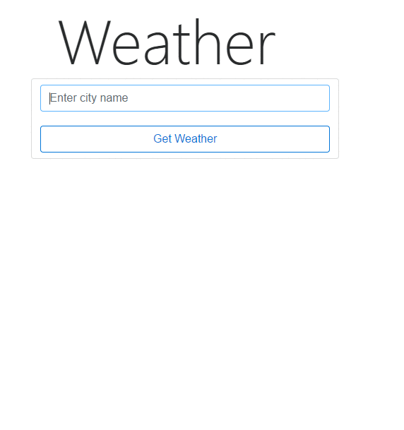 React Weather Application It fetches the weather of any city. Know the current weather in a single click. Getting Started Clone it by running command: git clone https://github.com/yash2code/ReactWeatherES6.git cd ReactWeatherES6 npm install npm start Built using Create-React-App Bootstrap OpenWeatherMapAPI Contact [email protected]