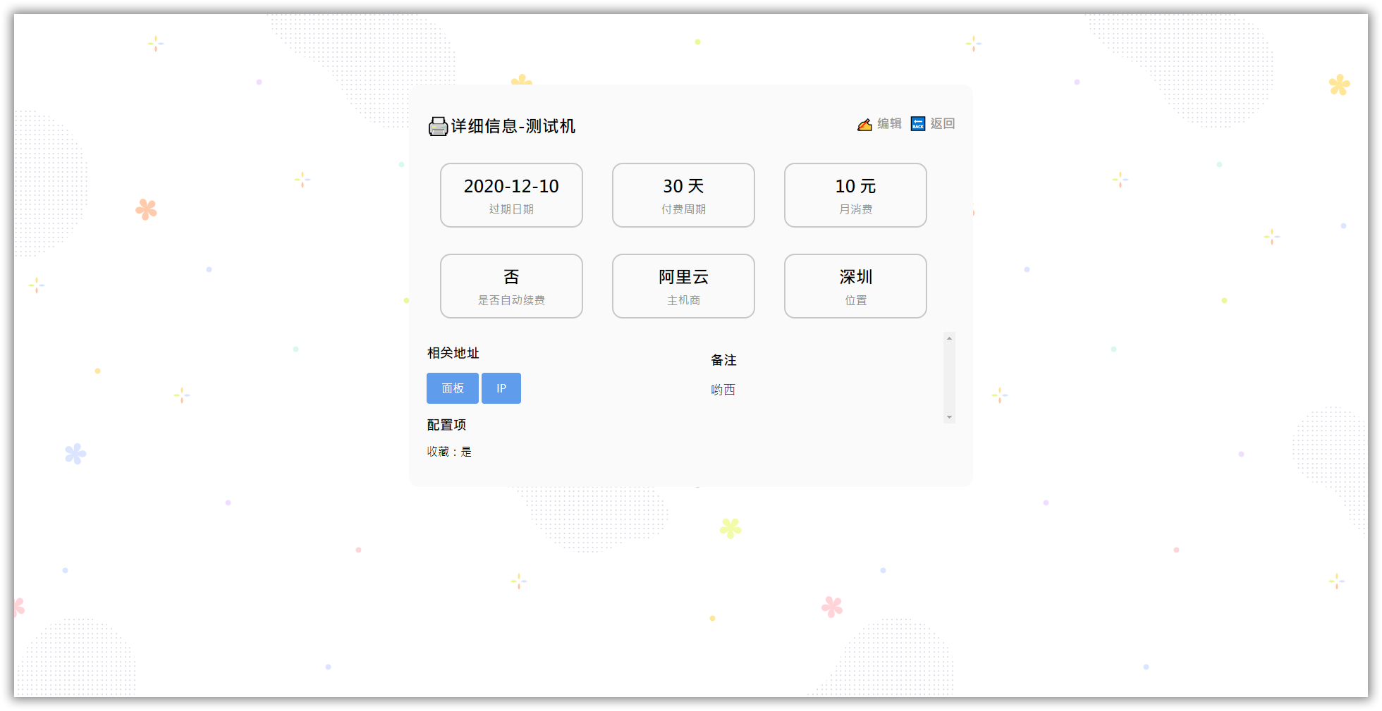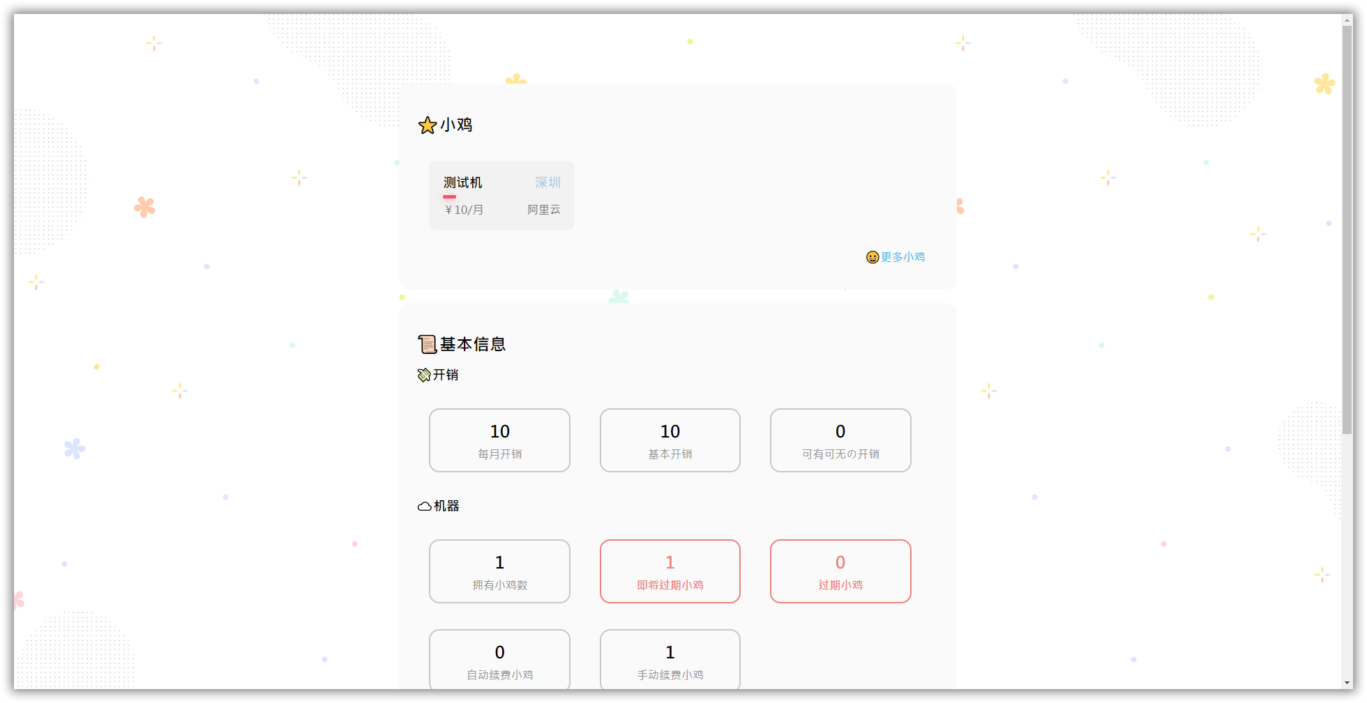 订阅助手(小鸡管理) 相较于上一个版本的更改 前端使用了体验更好的vue.js UI更加可人 使用server酱代替邮箱 等等,还有上一个版本? 使用Medoo数据库框架 使用说明 打开你的php的sqlite拓展 编辑项目X目录下main.class.php中的key和serverChanKey变量,前者为小鸡管理登录密钥,后者为serverChan发信密钥。 如果可以,设置crontab每天执行一次X目录下的cron.php 其他说明 因为精力有限,没有做更多安全处理,如果有需要的可以自己修改一下代码。